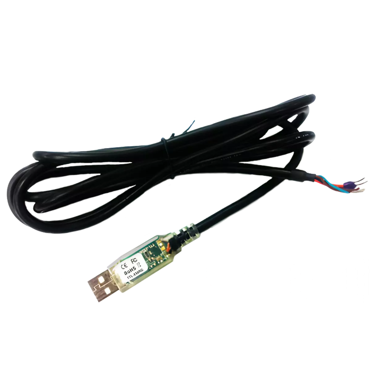 O cabo configurador D201 realiza a conversão USB para TTL-3V3 possibilitando a configuração, calibração e monitoramento dos transmissores S501 (modelo básico ou apenas display).
