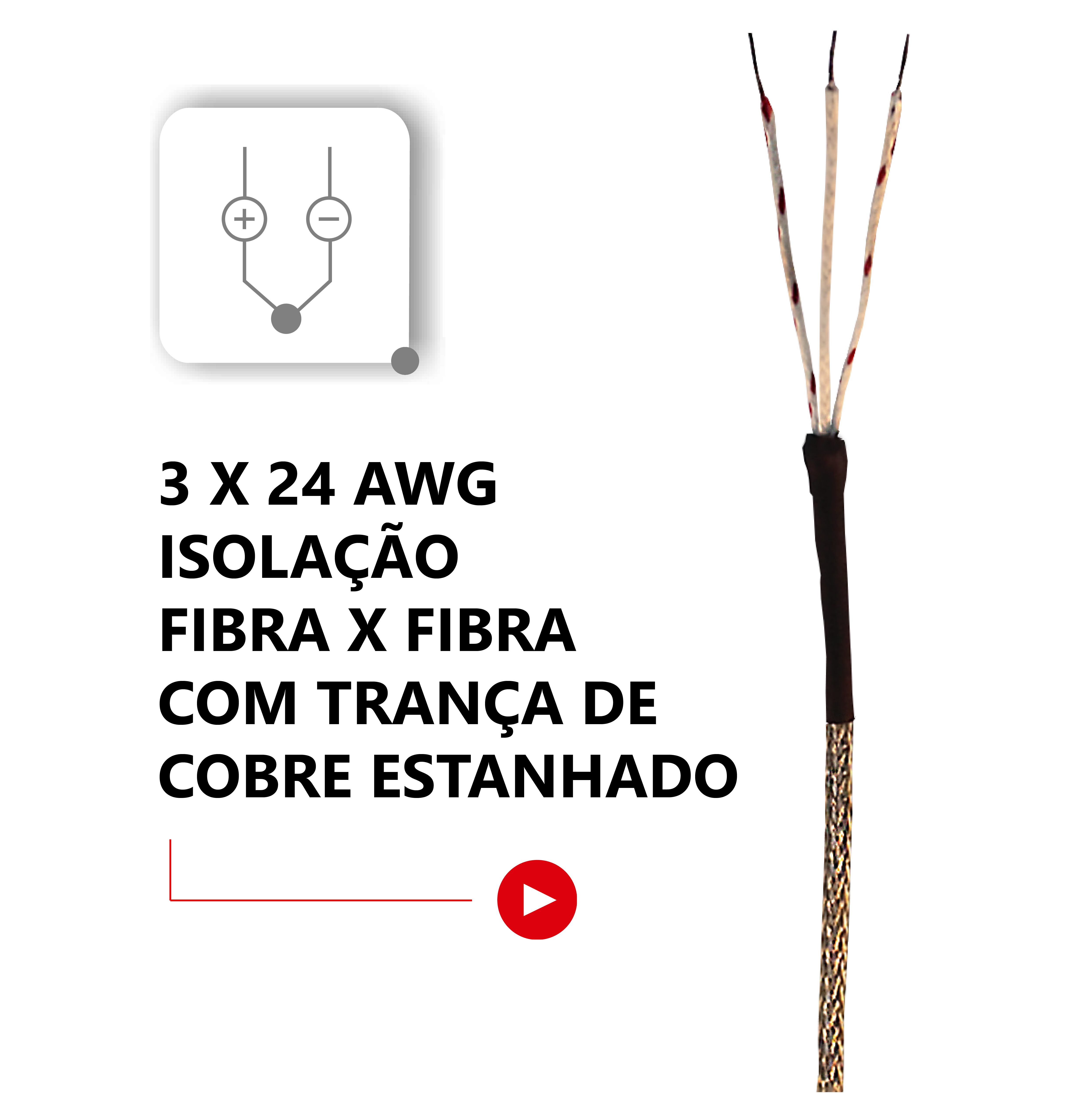 Cabo para Termoresistência bitola 3 x 24 AWG isolação Fibra de Vidro/ Fibra de Vidro com trança de cobre estanhado.