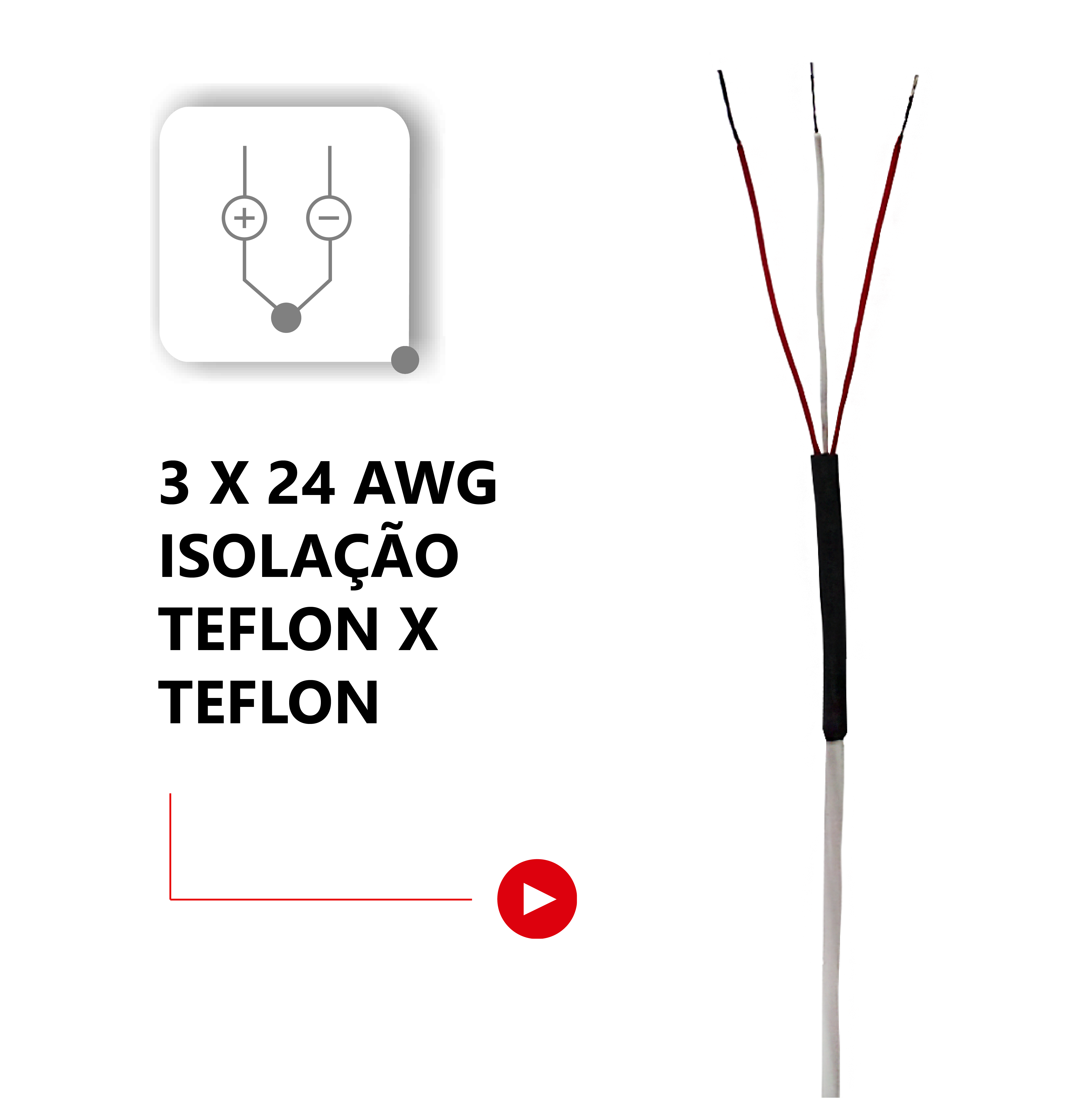Cabo para Termorresistência bitola 3 x 24 AWG isolação Teflon/ Teflon.