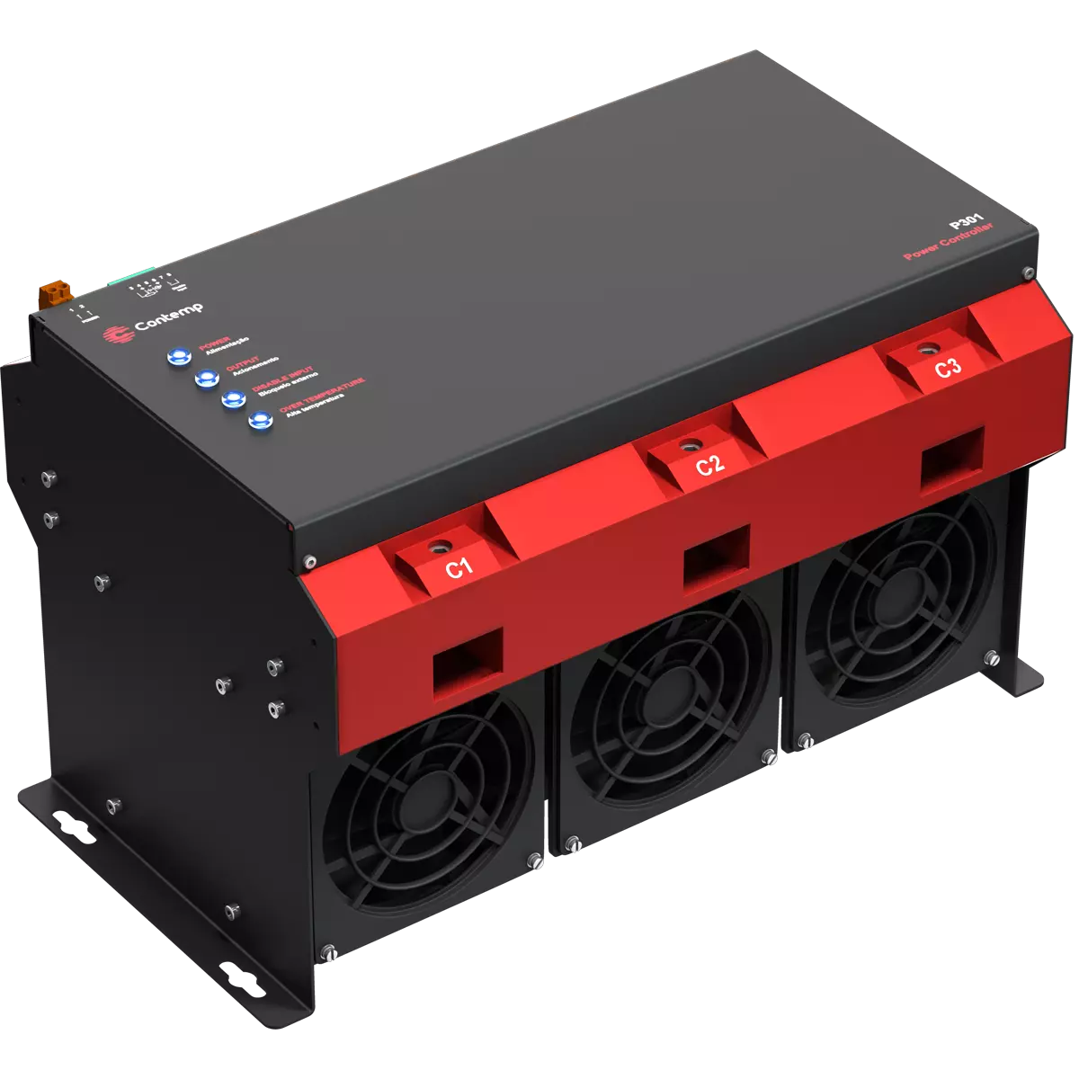 Montado em uma estrutura moderna e compacta, o P301 é equipado com sistema de refrigeração integrado (dissipadores + ventiladores) e barramentos de potência protegidos, garantindo segurança no manuseio e instalação, conforme as normas estabelecidas pela NR10.