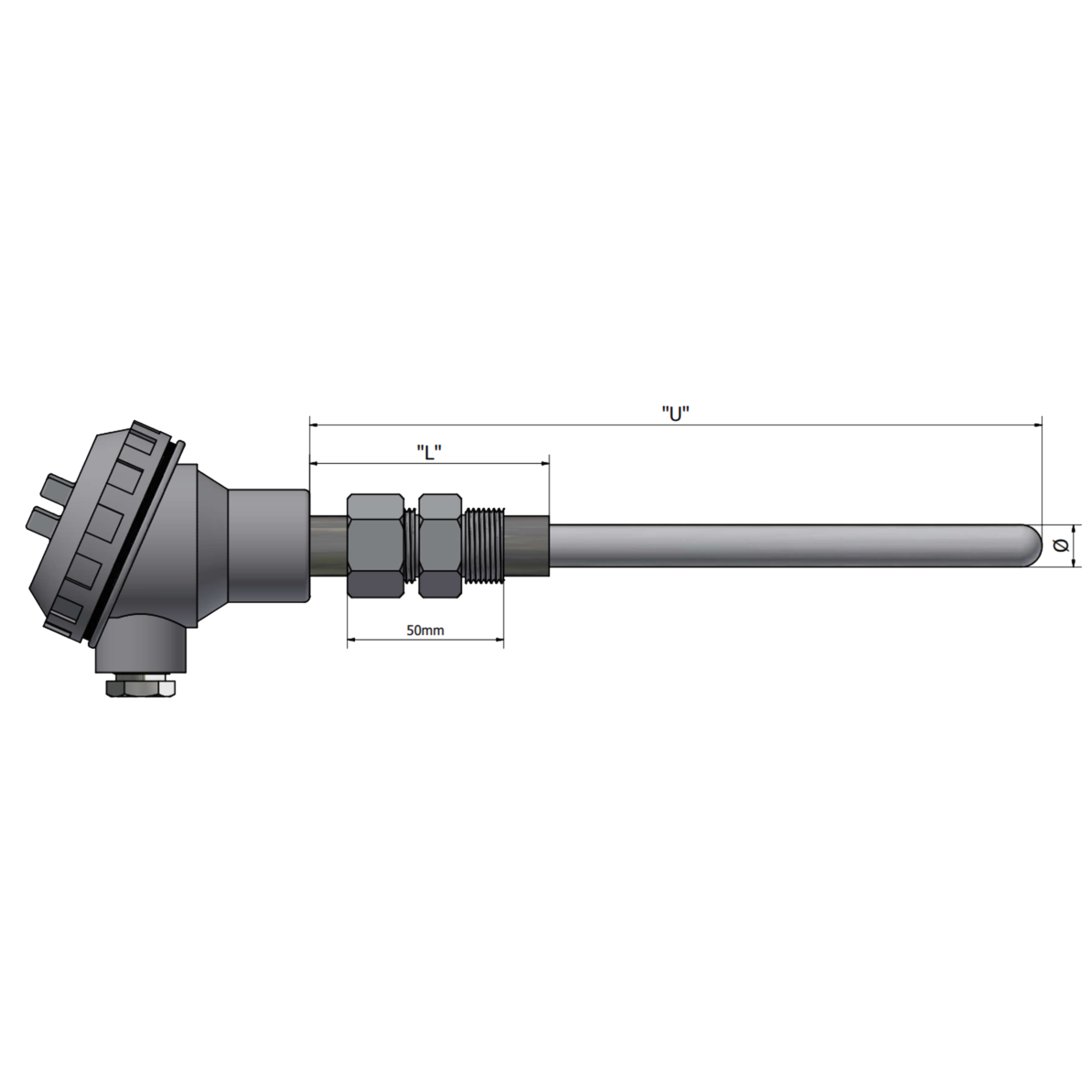 TCCL – Termopar com proteção cerâmica 610 ou 710 no diâmetro 6 a 24mm, luva inox 310, cabeçote de ligação em alumínio diversos formatos e bucin de fixação e ajuste ao processo. Sensor S, R ou B, calibração standard, 0 a 1.580°C. Opcionais: serviço de calibração RBC e transmissor 4 a 20mA