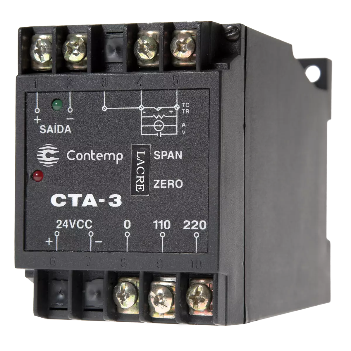 O transmissor de sinais CTA-03 possibilita padronizar os sinais de tensão ou corrente CC ou CA em sinais de instrumentação padrão (mA, V ou customizado). Provém isolação galvânica entre entrada e saída, que garante imunidade contra ruídos e proteção.