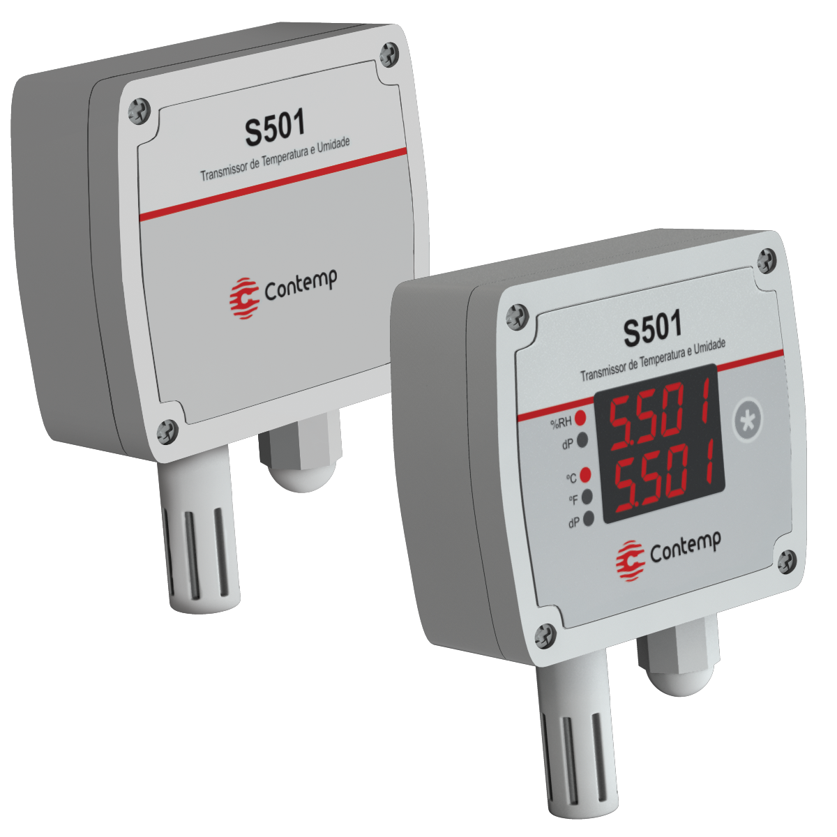 O Transmissor S501 possibilita a medição de temperatura, umidade e ponto de orvalho e possuí duas saídas de retransmissão isoladas. Disponível em montagem duto ou ambiente e em quatro modelos: básico, display, comunicação serial e comunicação serial + display.